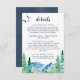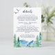 This Rocky Mountain wedding details enclosure card is perfect for an outdoor wedding. The design features a blue and green painted wilderness landscape with watercolor pine trees, birds and mountains.