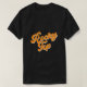 My 11 yo wore adult XL (5’7” 165#). The 8yo is small framed. She wore adult small and tied it in the back. Grandma wore adult large with long sleeve shirt underneath. Tall girl adult medium. Dark haired male adult large. Good quality dark Heather gray, Gildan brand shirt. -it was next up from basic choice and cost about $20 per shirt. Not too thick or thin. Washed and dried well, no major shrinkage. Not see-through. Can wear a bra under it fine. Screen print is just as shown and well done, front and back.