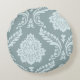 Rococo Damask Art I Duck Egg Blue+Teal Round Pillow
