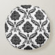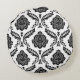 A vintage style decorative damask surface pattern influenced by rococo classical design in black detail on a white background.