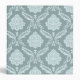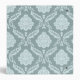 A vintage style decorative damask surface pattern influenced by rococo classical design in duck egg blue color detail on a teal background.