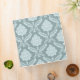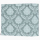 A vintage style decorative damask surface pattern influenced by rococo classical design in duck egg blue color detail on a teal background.