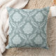 Rococo Damask Big Pattern Duck Egg Blue+Teal Throw Pillow