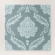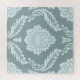 A vintage style decorative damask surface pattern influenced by rococo classical design in duck egg blue color detail on a teal background.