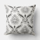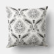 Rococo Damask Line Off-Set Pattern Black on White Throw Pillow
