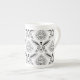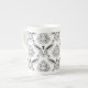 Rococo Damask Line Pattern Black on White Bone China Mug