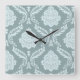 Rococo Damask Off-Set Pattern Duck Egg Blue+Teal Square Wall Clock