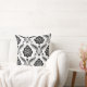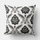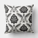 Rococo Damask Off-Set Pattern Grey Black White Throw Pillow