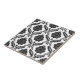 A vintage style decorative damask surface pattern influenced by rococo classical design in black detail on a white background.