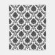 A vintage style decorative damask surface pattern influenced by rococo classical design in black detail on a white background.