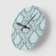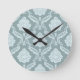Rococo Damask Pattern Duck Egg Blue+Teal Round Clock