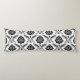 A vintage style decorative damask surface pattern influenced by rococo classical design in black and grey details on a white background.