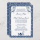 Rococo Floral Navy Blue White Wedding Invitation