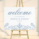 Welcome your guests with elegance and style! Set the perfect tone for your special day with this sophisticated wedding welcome foam board sign. Boasting a classic white backdrop, it perfectly highlights a decorative blue rococo design that adds an artistic flair. The easily customizable text template allows you to add your personal touch, making it not just a sign, but a beautiful keepsake of your memorable day.