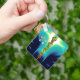 The key chain is made of metal and really sturdy. The flower design is really cheerful. The logo and colors are clear and crisp!