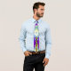 I bought this tie for a cosplay of Haruhi Fujioka for Halloween and anime conventions. It feels very nice and silky. It's my first tie ever, and I'm a pretty big fan since I always wanted a tie. It was longer than I expected it to be (quite a plus), but the purple stripe was also thinner than I expected it to be (a slight bit of a downer, but I don't mind too much). I had never used Zazzle before, but I am very impressed with the shipping time. I was looking for places to get a tie like this so last minute since the ties like this on Amazon were incompatible with Prime. Thus, I ended up here. I paid for express shipping, expected delivery October 30-31, and it arrived in the morning on the 30th. Very impressed. I might just use Zazzle again. The print job was okay. The colors were perfect, but as you can see in the pictures, the stripe was a little off-center, and there was a kink in the stripe around where it transitions from the wide end to the thin end. It should work perfectly for my cosplay, but it was a little too carelessly print to be a very professional tie.