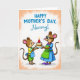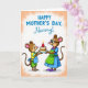 Designed with two friendly, human-like rodent characters at the center, this card shows a sweet exchange that feels like a close bond between family or dear friends ❤️. A smaller, youthful figure in a yellow-and-blue striped shirt, green shorts, and a light blue apron holds out a tiny frosted cake topped with a bright red candle and a small glowing flame. Facing them is a taller, motherly figure wearing black-framed glasses, a pink bead necklace, a sky-blue dress, a lime-green apron, and purple slippers, leaning in with a gentle, caring look. Their soft smiles and open posture make the moment feel affectionate and close, like a quiet thank-you shared between two people who adore each other. A warm orange glow forms a halo-like border around the scene, giving the background a cozy, celebratory feel 🌼. Near the top, large blue text is placed overhead to deliver the message, standing out clearly against the warm-toned backdrop. The outlines are crisp and the colors are richly filled, with layered apron details and neatly striped sleeves adding texture. The candle’s red wax and tiny yellow flame sit above the cake, centered between the two characters’ hands.