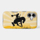 Colorful sunset cowboy on bucking horse on iPhone cases. Perfect for horse lovers, cowboys, cowgirls and riders. ADD your own text to customize. Click Customize button.