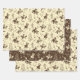 This Western themed wrapping paper set of 3 sheets features a variety of rodeo cowboys in action riding, roping, and bronc busting, interspersed with saddles, boots, hats, and guitars, with 2 sheets of light beige background, and one of dark brown. This wrapping paper is perfect for special gifts for cowgirls and cowboys, and anyone that loves horses and Western riding events.