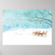 Roe deer in winter. Book illustration. A group of roe deer steps on the freshly fallen snow under an old oak tree. Winter landscape painted in colors that illustrate a cold winter day in nature. Roe Deer winter snowy forest landscape.