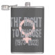 Stylish flask marking the overturning of Roe v Wade by the current Supreme Court, features grunge style "The right to choose. 1973-2022" text in gray with light pink female symbol on charcoal background.