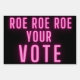 Show your support for demanding equal rights for all by voting Pro-Choice in November! This outdoor sign features bold pink neon letters on black background with "Roe Roe Roe Your Vote" message.