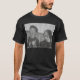 My 11 yo wore adult XL (5’7” 165#). The 8yo is small framed. She wore adult small and tied it in the back. Grandma wore adult large with long sleeve shirt underneath. Tall girl adult medium. Dark haired male adult large. Good quality dark Heather gray, Gildan brand shirt. -it was next up from basic choice and cost about $20 per shirt. Not too thick or thin. Washed and dried well, no major shrinkage. Not see-through. Can wear a bra under it fine. Screen print is just as shown and well done, front and back.