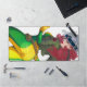 LOVE this desk mat! It's large! It fits across my desk. No need for a small mouse pad now! Color and print are excellent. Quality seems to be excellent too. Delivery was about 3 days sooner than expected. I think this is one of my favorite Zazzle products! Excellent. The color is vibrant and true to what I expected.