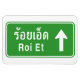 Funny Roi Et, Isan, Thailand Ahead bilingual Thai highway sign written in Thai and English Language Scripts.