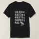 My 11 yo wore adult XL (5’7” 165#). The 8yo is small framed. She wore adult small and tied it in the back. Grandma wore adult large with long sleeve shirt underneath. Tall girl adult medium. Dark haired male adult large. Good quality dark Heather gray, Gildan brand shirt. -it was next up from basic choice and cost about $20 per shirt. Not too thick or thin. Washed and dried well, no major shrinkage. Not see-through. Can wear a bra under it fine. Screen print is just as shown and well done, front and back.