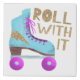 ROLL WITH IT | Retro Roller Skate Quote Faux Canvas Print