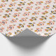 Rolled pink floral wrapping paper with a repeated pattern of stylized flowers and leaves. The pink and green design evokes a cheerful, modern vibe.