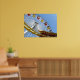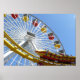 Are you a fan of amusement parks? Love ferris wheels or taking a ride on a roller coaster? If so, then this poster will be right at home hanging on one of your walls. It features a photo of roller coaster riding past a Ferris wheel at the Santa Monica Pier in California.