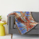 A quality printed throw has its advantages. This is a much finer weave throw than its loopier cousins, and though lighter, it is worth the investment for custom room accessorizing. The back is much prettier than the typical brown, and the fringe on the long sides very vivid, the selvage nicely done. Before photographing, I washed the throw in cold water, delicate, with a thicker woven throw the same size. On tumble dry low, this throw was dry in half the time as the other. This is a very practical quality if you use throws for furniture covers or to wrap up in frequently. The sleekness of the fabric makes it a great layer for accenting or protecting without the feeling of sitting on too much stuff. Perfect for napping or when you feel a light chill coming on. The color printing is beautiful and on this fabric, matched the design and color of my Photoshop image. This is an advantage for blending room fabrics and colors. The fringe on the short sides prints the colors from the design image and therefore varies from the side fringe. I streaked a white fractal line through the plaid pattern to give the illusion of weaving. This printed as crisp as an illusory thread, and put some white in the short side fringe, showing another advantage of print vs loomed- for artistic purposes, line lines, detail, and color integrity can be planned and preserved. My loomed throws have color limitations and more of a needlepoint texture. Print throws reproduce an exact image. The throw felt a little stiff straight out of the package, but this went away in the first delicate wash. Of course I searched the wash water for ink or bleeding and there was none.
