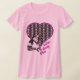 '50's style pin up in roller derby skates on a skull and crossbones filled heart - grayscale with hot pink accents