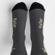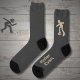Basically dark grey socks with a sand color roller skate figure on the calves and a custom text on the outside of the foot. Intended for rollerblading and inline skating enthusiasts.