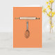 All occasion greeting card with blank inside; features hand drawn "vintage" rolling pin and whisk on an orange background.