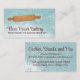 Fun and simple rolling pin and flour dusting on this business card for a home baker, baking biz, bakery or pastry chef, cookies, pies, pastries and other baked goods, personalized with your choice of color scheme and fonts.