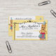 Adorable retro rolling pin bakery woman wearing a flowered, frilly apron and big smile on this business card for a home baking business, pie, cookie, or other baker or pastry chef.
