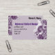 Border curls in white and purple on this easy to personalize. This classic business card size is designed with a broken purple and white spiral digital art design along the card sides with a complementary background color. The card can serve for any occupation when you personalize the text, remove text or use the edit design tool to select a font style, size and color you prefer.