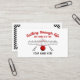 The perfect business card for anything bowling related! Features a front and back side with easy to update text. The front has a design with a bowling score card frame and bold text that reads "Rolling through life one frame at a time" coupled with pins and a red bowling ball. Beneath this is your name. The back features your contact information inside a checkered frame.