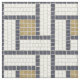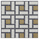 Elegant Roman motive stone mosaic geometric squares and shapes pattern, White black and gold tones.