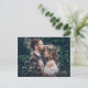 Our wedding photo elopement postcards are the perfect way to announce your marriage to friends and family while showcasing your favorite elopement photo. The delicate hand lettering design adds a romantic touch to the modern and beautiful photo card layout. Crafted from high-quality cardstock, these postcards have a luxurious feel and will be cherished by your loved ones as a keepsake from your special day. The customizable photo option allows you to choose your favorite elopement photo and add a personal touch to the card. With ample space for your message of love and gratitude, these postcards are a perfect way to share your joy with those closest to you. Whether you opt for a classic black and white photo or a vibrant and colorful one, our wedding photo elopement postcards are a stylish and elegant way to announce your marriage and share your special day with others.