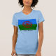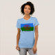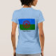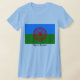 The World Romani Congress have adopted a Romani flag which is respected by all the Roma the world over. It comprises of blue and green traditional colors with the red wheel in the center. Blue is the blue sky and the heavens. Green is the land, organic and growing. The blue symbolizes eternal spiritual values; the green earthly values. The wheel in the center symbolizes movement and progress. Any and all royalties made from sale of this shirt will be donated to the ERRC. http://www.errc.org/cikk.php?cikk=1990