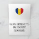 Beautiful design includes happy balloons and ticker tapes with the words "Happy Birthday", covered in the colors of the Romania flag. Design is finished with the heart in the Romania flag colors and the Birthday message. Elements are fully customizable using "Customize it!" feature. This colorful birthday card is the perfect present for your friend from Romania. © CountriesOfTheWorld