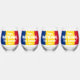 Celebrate Romanian Independence (National) Day with this striking December 1st stemless wine glass, which features the blue, yellow, and red bars of Romania's national flag. Noroc! Reverse shows identical design.