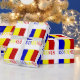 The Romanian Flag is a vertical tricolor with blue, yellow and red stripes. This design features the word ROMANIA under the flag in the colors of the flag. Share gift wrapping paper with your heritage, too.