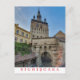 A beautiful view of the Clock Tower in Sighisoara in Romania printed on a postcard.
