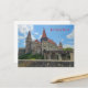 A beautiful view of the Corvin Castle in Romania printed on a postcard.