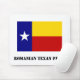 White mousepad with Texas flag with Romanian Flag colors with "Romanian Texan Pride" underneath.